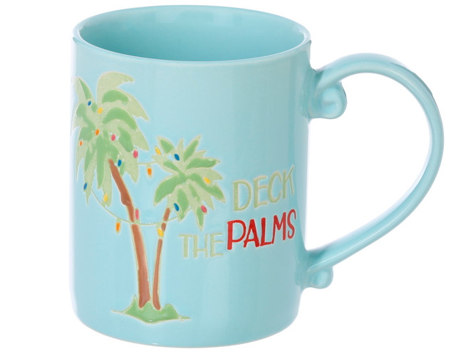 Celebrate the holidays with a tropical twist using the 15 oz Deck the Palms Mug. This festive ceramic mug features vibrant palm trees wrapped in colorful Christmas lights, bringing beach vibes to your winter mornings. Perfect for coffee, tea, or hot cocoa, its both microwave and dishwasher safe for easy everyday use. Whether you're gifting it or keeping it for yourself, this cheerful mug adds a sunny splash of holiday spirit to any kitchen.