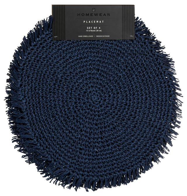 Elevate your table settings with this set of 4 round placemats, each measuring 15'' in diameter for a sophisticated touch. Crafted from 100% paper, these placemats offer a soft and inviting texture while ensuring long-lasting durability. Perfect for family dinners or gatherings, this set of four placemats provides ample coverage and protection against spills.