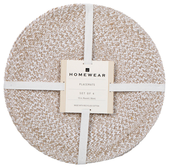 Elevate your table settings with our set of 4 round placemats, each measuring 15'' in diameter for a sophisticated touch. Crafted from 100% cotton, these placemats offer a soft and inviting texture while ensuring long-lasting durability. Perfect for family dinners or gatherings, this set of four placemats provides ample coverage and protection against spills.