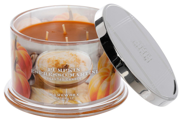 Fill your home with the scent of the season using this 18 Oz Pumpkin Espresso Martini Scented Candle, infused with essential oils and designed with four wicks for a strong, even burn. Fragrance notes include espresso coffee, pumpkin spice, brown sugar and vanilla bourbon. Burns for 30 to 55 hours. Trim wicks before each use for best results. Measures approximately 3.5 in x 5.5 in round.