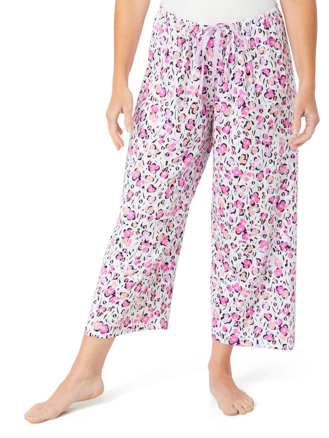Relax in style with the Women's Floral Etching Pajama Capris. Made from soft fabric with a delicate floral print, these capris feature a comfortable drawstring waistband and a breezy fit. Fabrication 60% cotton, 40% rayon