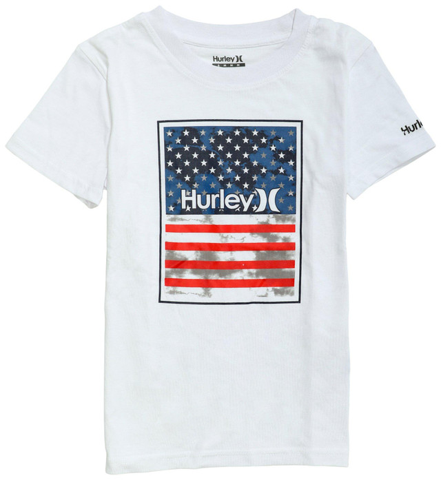 This Hurley boys shirt offers a soft-to-the-touch feel for all-day comfort. Featuring a bold flag design with a cloud background, it adds a stylish touch to any outfit. The classic crew neck and short sleeves ensure a relaxed fit, while the Hurley logo on the left shoulder completes the look. Perfect for casual wear, this shirt keeps him comfortable and cool.