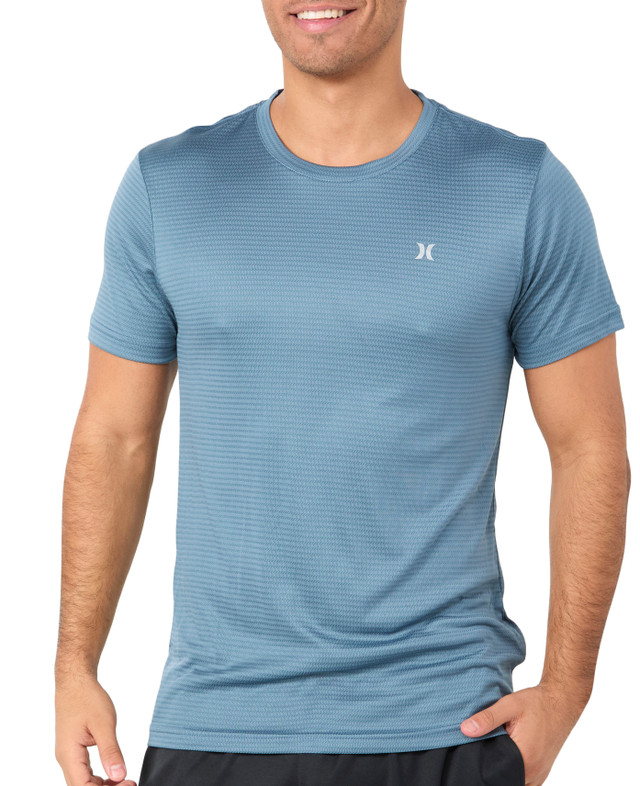 Stay dry and active with ease in this mens crew shirt from Hurley Built with moisture wicking and performance stretch this shirt delivers comfort and flexibility for active days on land or sea Ideal for workouts travel or casual wear this tee keeps you cool confident and ready for action