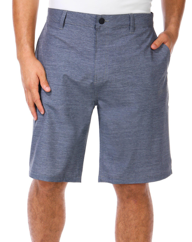 Take on land or water with our Men's Essential Heather Hybrid Walk Shorts. Featuring a heathered finish, button-fly zip closure, 9.75 inch inseam, 20 inch outseam, and 4-way stretch for ultimate mobility. Water-repellent fabric and multiple pockets make them perfect for active days. Fabrication 92% polyester, 8% elastane