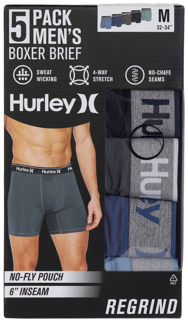 These boxer briefs feature solid color designs on a soft knit fabrication, a soft and stretchable branded elastic waistband, sweat wicking technology, tagless comfort, and no-chafe seams. Contains 5 boxer briefs.