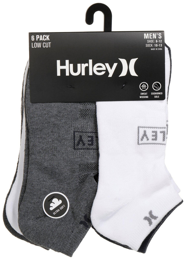 Hurley Mens 6 Pk Colorblock Cotton Blend Low Cut Socks