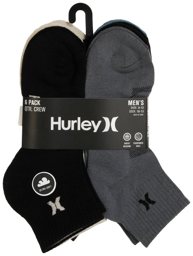 Elevate your sock game with these Men's Ultra Soft Quarter Cut Socks. The pack includes 6 pairs of socks in blue, white and beige colors that will complement any outfit. These socks are not only soft but also durable. Featuring a cushioned design, these socks will keep your feet comfortable all day long. Shoe Size: 812 | Sock Size: 1013. Material: 94% Polyester / 4% Rubber / 2% Spandex