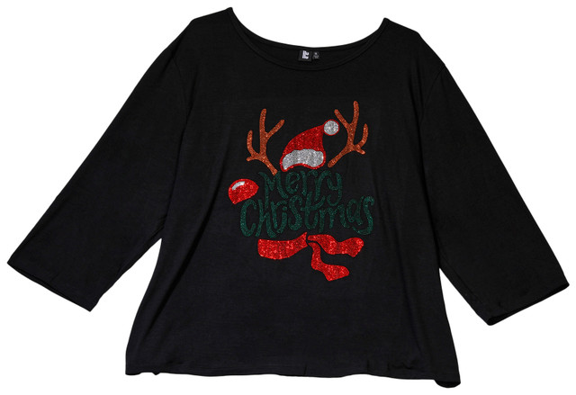 Spread holiday cheer with the Women's 3/4 Sleeve Merry Christmas Reindeer Top. Made from a soft blend of 61% polyester, 33% rayon, and 6% spandex, it offers comfort with just the right amount of stretch. The festive reindeer design adds playful charm and the length makes it easy to pair with jeans, leggings, or skirts. Perfect for parties, family gatherings, or cozy evenings celebrating the season.