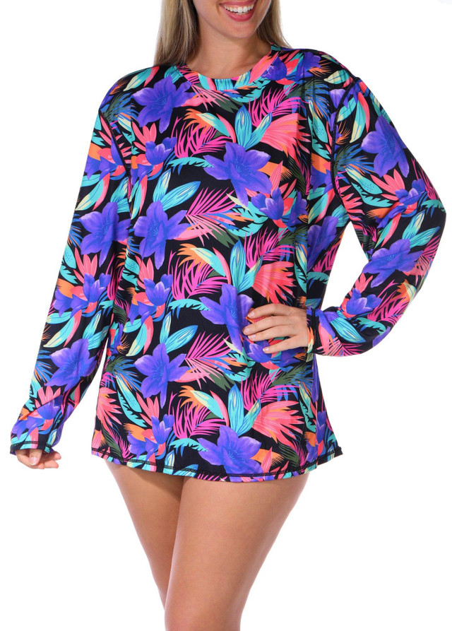 Stay protected in style with this long sleeve swim shirt, featuring a bold print pattern and UPF 50+ sun protection. Lightweight and quick drying, it is perfect for active days under the sun, whether you are swimming, paddling, or just soaking up the seaside breeze.