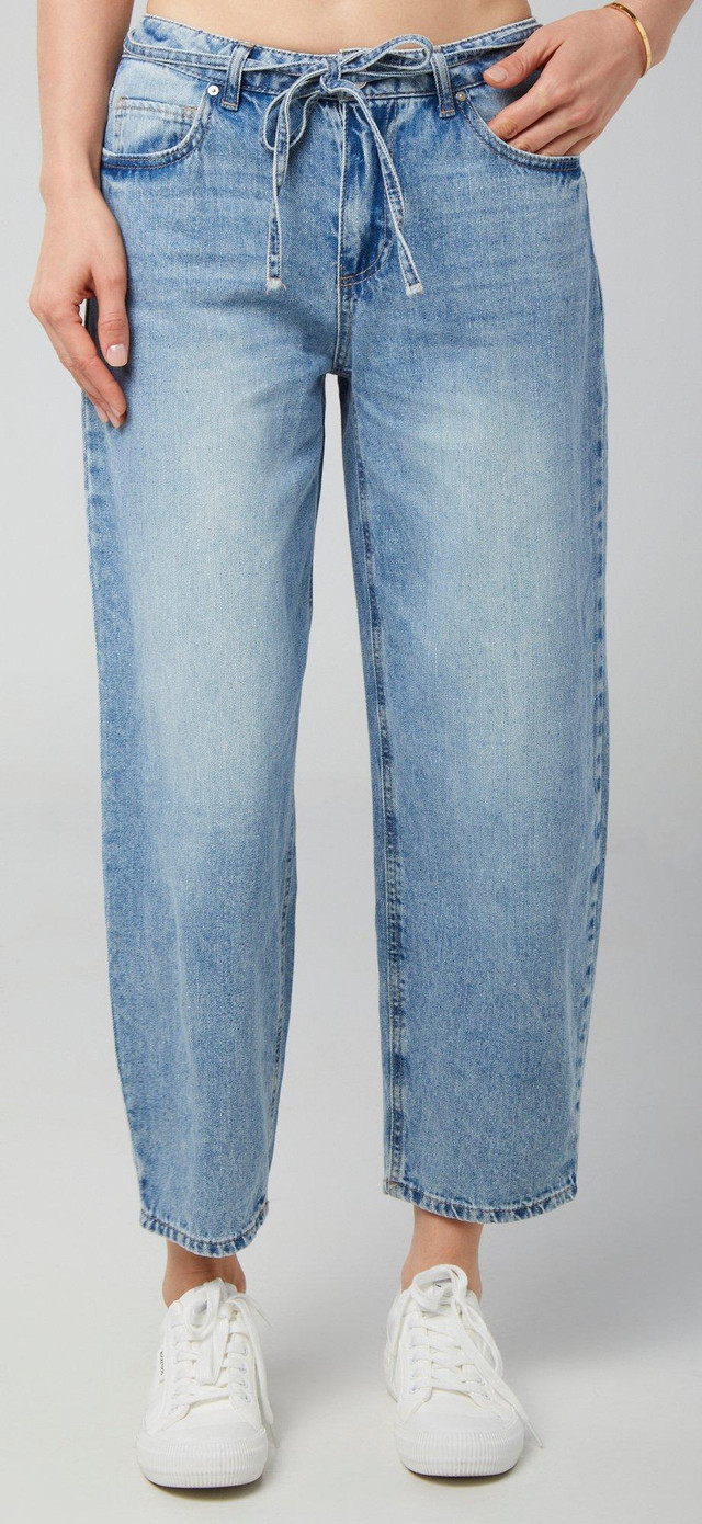 Elevate your denim game with these High Rise Barrel Jeans. Crafted from comfortable cotton, these jeans feature a button-fly zip closure and a classic 5-pocket cut. The high-rise waist tie adds a stylish touch, while the barrel leg fit offers a modern silhouette. Perfect for casual or dressed-up looks, these jeans combine comfort and trendiness effortlessly.