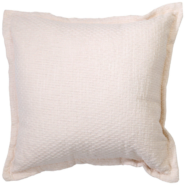 Elevate interior accents with the 22x22 Cotton Woven Decorative Throw Pillow featuring a textured square lattice pattern. Designed for both comfort and visual interest, it complements a range of styles from modern to transitional. Spot clean for best care. Fabrication is 100% cotton (cover) 100% polyester (fill). Measures approximately 22 in x 22 in x 10 in.