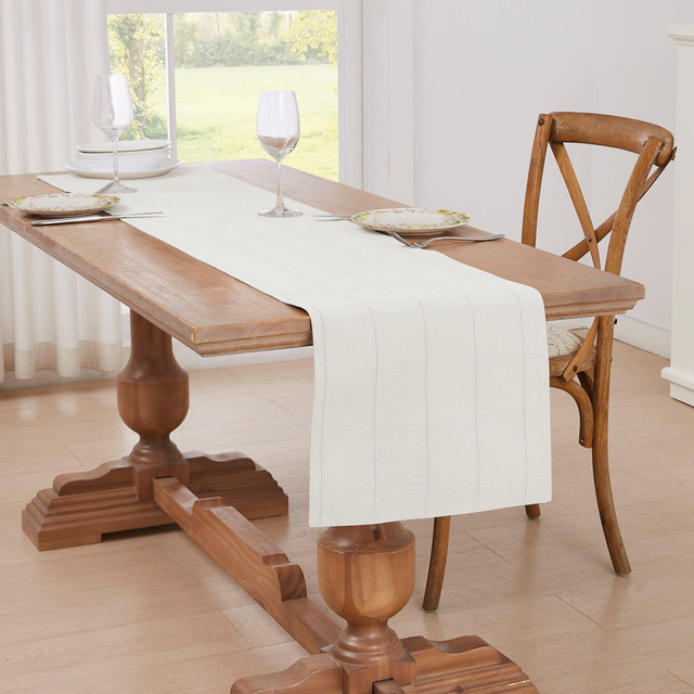 The Izod Chadwick 14 in. x 72 in. Runner features a textured woven windowpane design. The windowpane is made up of 3 in. squares bordered with double-woven rows and hem-stitched lines. Made of 55% cotton, 45% polyester for a soft feel and easy care. Machine washable.