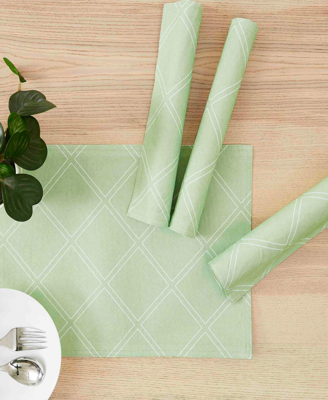 Enhance your dining experience with the Izod Harbor Trellis Placemats. Featuring a fresh, contemporary design, they are perfect for both everyday use and special occasions, for a versatile addition to your home decor. The water-resistant fabric ensures durability and easy maintenance, while its functional design brings a touch of elegance to family gatherings and friendly get-togethers. Fabrication 100% polyester.
