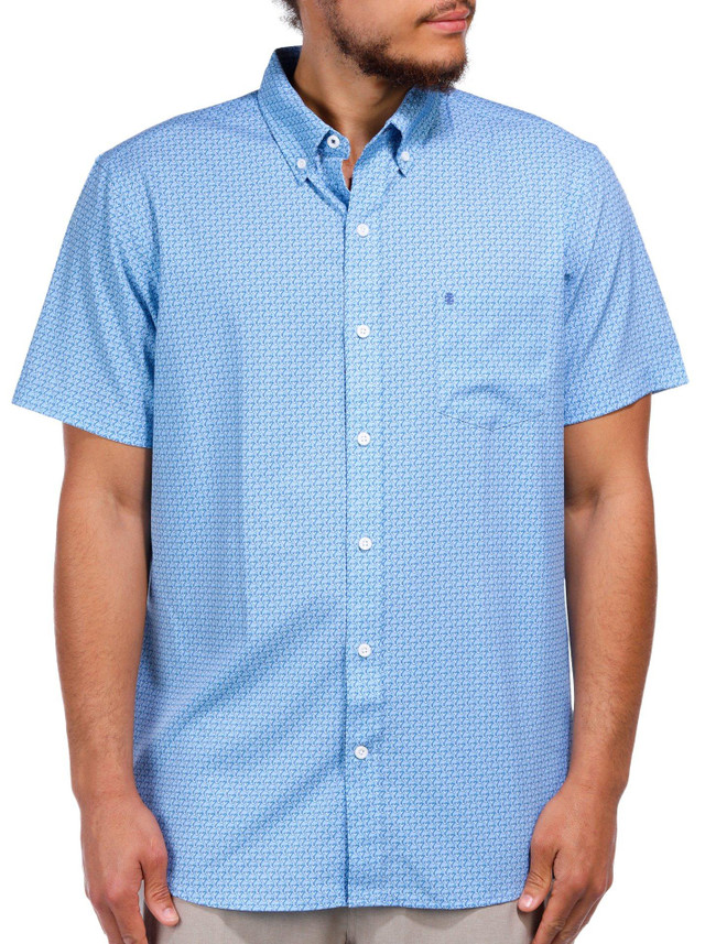 Add a playful touch to your wardrobe with this short sleeve shirt, featuring a buttoned front and a charming martini print pattern. The chest pocket adds a practical element, making it perfect for casual outings and relaxed gatherings. Crafted from high-quality materials, this shirt offers both comfort and style. Fabrication is 92% polyester, 8% elastane.