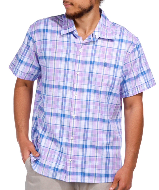 Enhance your wardrobe with our Men's Short Sleeve Button Down Shirt. Made from 100% cotton, this shirt offers a soft, breathable feel for all-day comfort. The woven exterior adds a touch of texture, while the button-down front and collared neckline provide a classic, polished look. With short sleeves, this shirt is perfect for casual outings or semi-formal events, ensuring you stay stylish and comfortable.