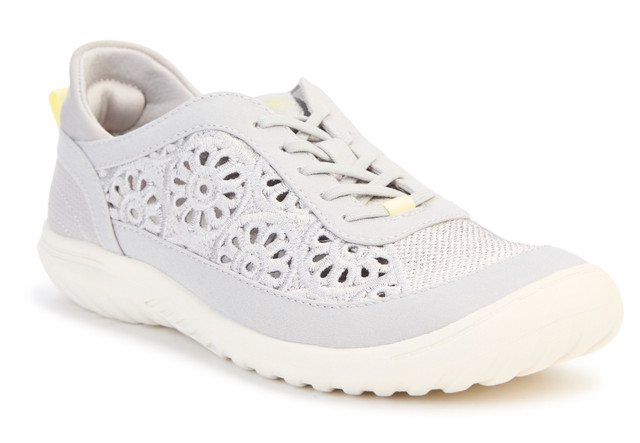 A flirty sneaker with rugged appeal. The Solar is an ideal match for the adventurer with a sweet side, pairing a durable All Terra traction outsole with a mixed material upper of fabric, mesh, neoprene, and satin flyknit, accented with floral perforations. A traditional lace-up closure allows you to secure the shoe to your liking, and memory foam insoles cushion every step.