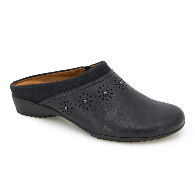 Step into boho charm with these Vista Clogs. Made from vegan leather with floral cutouts and polished studs, this lightweight slip-on adds flair to any outfit. Memory foam insoles and all-terra traction offer cushioned comfort and grip, perfect for transitional seasons.