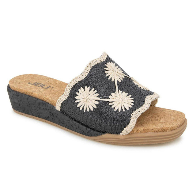 The Winnie sandal will have you feeling like you're on holiday in the Mediterranean. A simple, lightweight slide, the style is crafted from raffia, with white raffia embroidery that creates a playful floral pattern. Contoured insoles and a flexible outsole with all-terrain traction add a layer of comfort and durability to this on-trend fit.