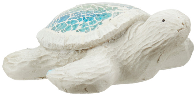 Crafted from durable resin, this mosaic sea turtle adds a splash of coastal charm to any space. Its vibrant, textured shell brings color and character to shelves, desks, or garden nooks. Measures 5 in x 4 in