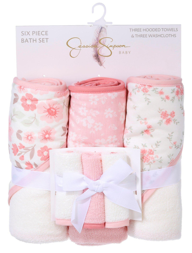 Make bath time fun and cozy with this 6-piece baby bath set, featuring three soft hooded towels and three gentle wash cloths. Designed for comfort and convenience, it is perfect for keeping your little one warm and clean after every splash.