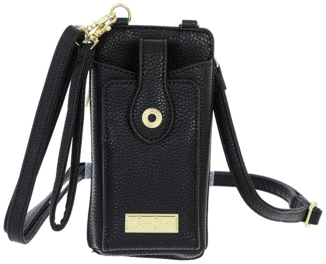 Introducing the Pebble Leather Phone Crossbody Bag a sleek and stylish solution for carrying your essentials. This bag features elegant gold-tone hardware and an adjustable, removable crossbody strap for versatile wear. It includes a snap button phone pocket and a back zip pocket for secure storage. Measuring 3.5 in x 1.5 in x 7 in, it's the perfect size for keeping your phone and other small items close at hand.