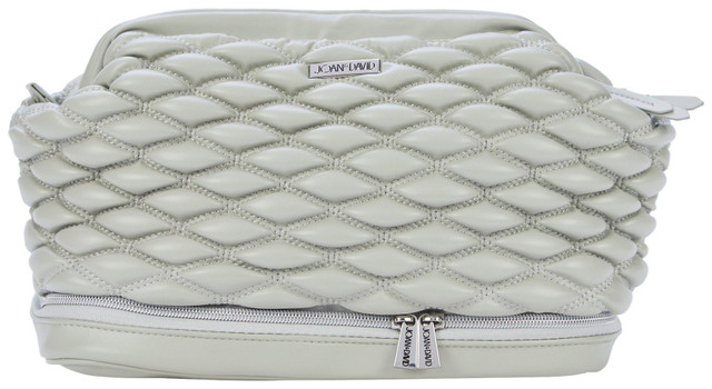 Travel in style with this toiletry bag featuring a solid color with a charming quilted design. Perfect for organizing your grooming essentials, the interior features (4) elasticized slip pockets. The bottom section features an elasticized slip pocket and a large plastic zippered pocket. The durable material ensures long-lasting use. Includes bonus (2) travel size bottles. Measures approximately 12 in x 5.5 in x 7.5 in.