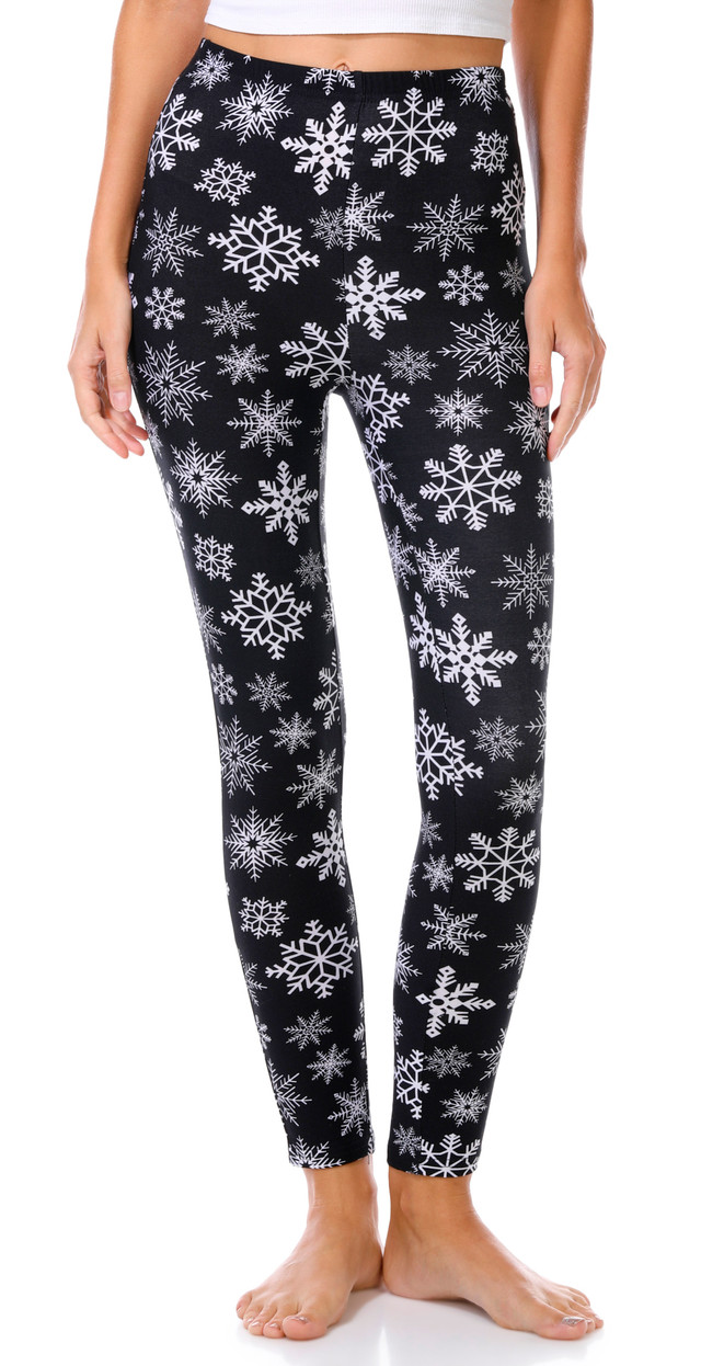 These juniors bottoms feature a fun Christmas print of snowflakes. Soft and comfortable with no pockets, they bring festive cheer and cozy style to seasonal lounging or sleepwear. Fabrication is 95% polyester and 5% spandex.