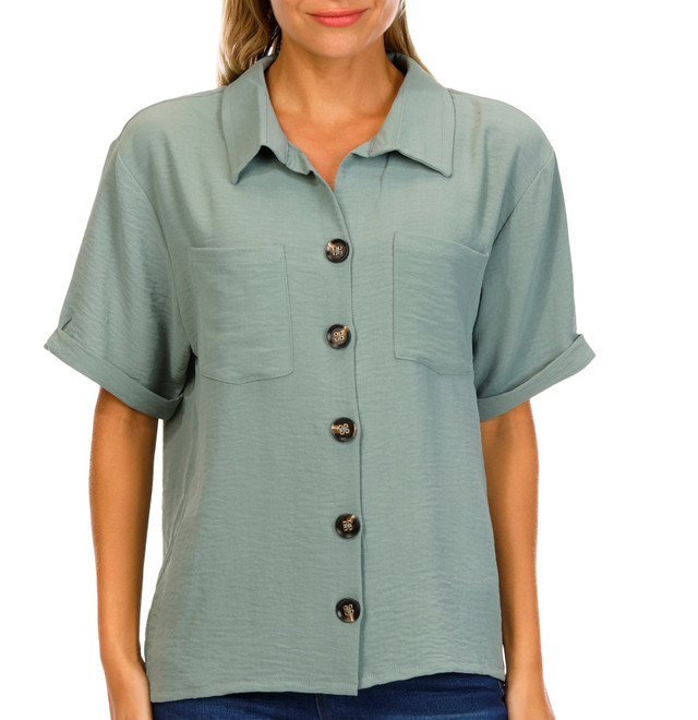 Jolie & JoyJolie & Joy Juniors Short Sleeve Button Collared Pocket Top