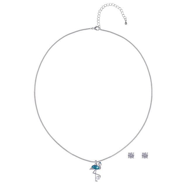 Add a touch of tropical charm with this flamingo necklace and stud earrings set. Featuring a sleek flamingo pendant accented with a blue gem, this set brings a fun yet elegant vibe to any outfit. The matching stud earrings complete the look with simple style. Lightweight and easy to wear, its perfect for sunny days or casual outings.