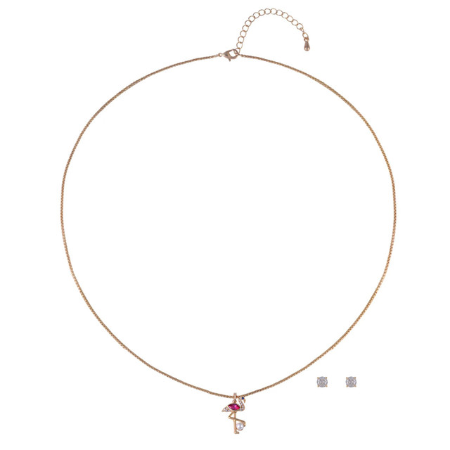 Juilliet Flamingo Pendant Necklace & Stud Earrings Set