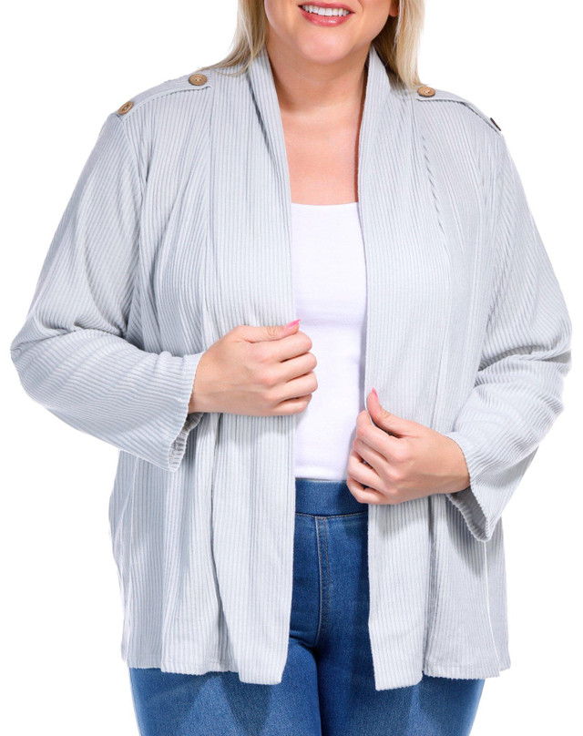 The Long Sleeve Open Cardigan is a chic and versatile piece for any wardrobe. Crafted from ribbed fabric, it offers a comfortable and stylish fit. The button shoulder details add a unique touch, making this cardigan stand out. Perfect for layering over your favorite outfits, it combines fashion and functionality effortlessly. Fabrication is 68% polyester, 27% rayon, 5% spandex.
