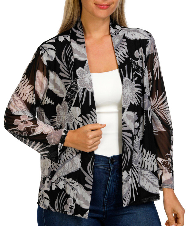 Add a touch of elegance to any outfit with our Women's 3/4 Sleeve Floral Mesh Cardigan. Crafted from a soft polyester-spandex blend, it features a breezy open front and delicate floral mesh design. Perfect for layering, it offers lightweight comfort and effortless style.