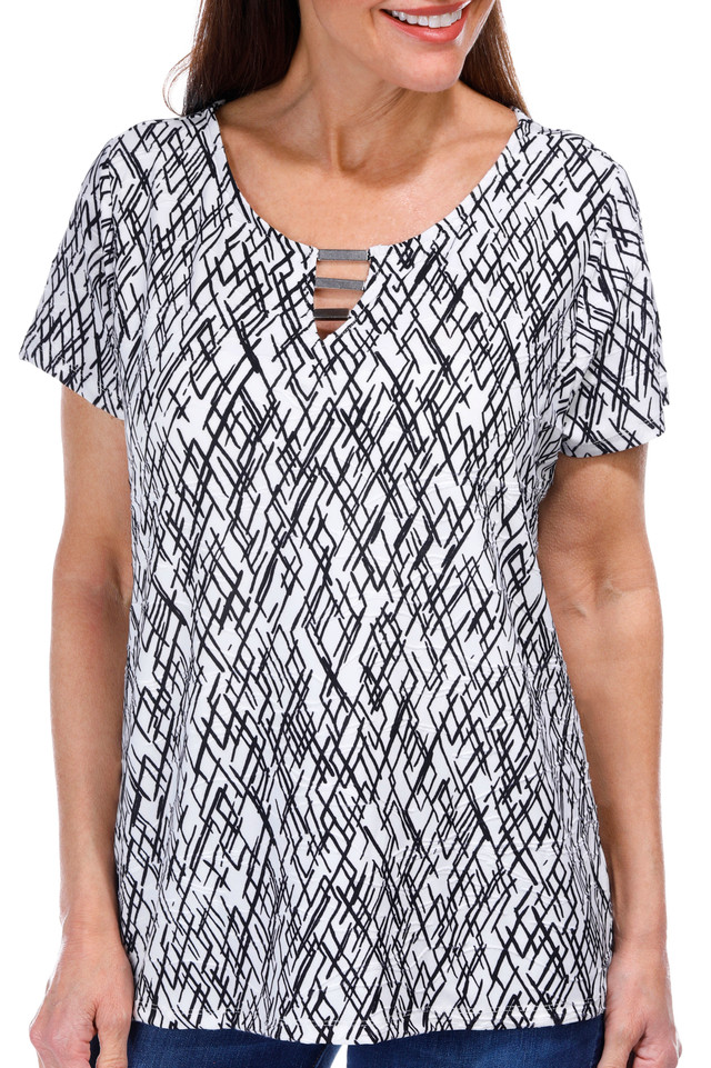 Juniper + LimeJuniper + Lime Womens Short Sleeve Brushed Jacquard Top