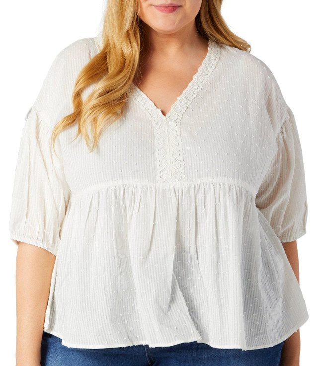 Indulge in comfort and style with this 3/4 Sleeve Top, crafted from soft cotton and textured woven fabric that feels delightful against the skin. The intricate lace trim adds a touch of feminine elegance, making this top perfect for any occasion. Whether paired with jeans, skirts, or trousers, it offers a versatile and chic option for your wardrobe.