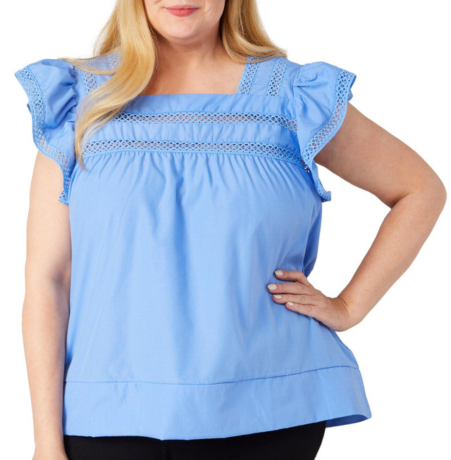 Add a touch of whimsy to your wardrobe with this Flutter Sleeve Top, featuring a charming square neckline and delicate open crochet details. The flutter sleeves provide a playful and feminine flair, while the lightweight fabric ensures comfort and ease. Perfect for both casual and dressy occasions, this top pairs beautifully with jeans, skirts, or trousers. Embrace effortless elegance and unique style with this delightful flutter sleeve top.