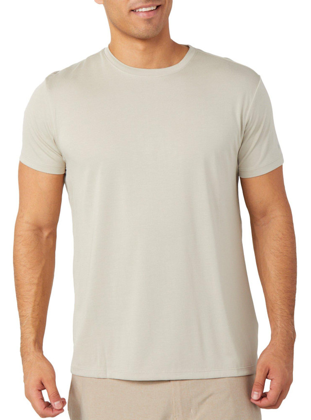 This mens short sleeve shirt is made from soft modal fabric for a smooth lightweight feel. The classic crew neck and solid color create a clean versatile look that works for relaxing at home or casual outings. This shirt offers effortless comfort and simple style, making it easy to feel cozy confident and ready for the day ahead. Fabrication is 65% modal and 35% polyester.