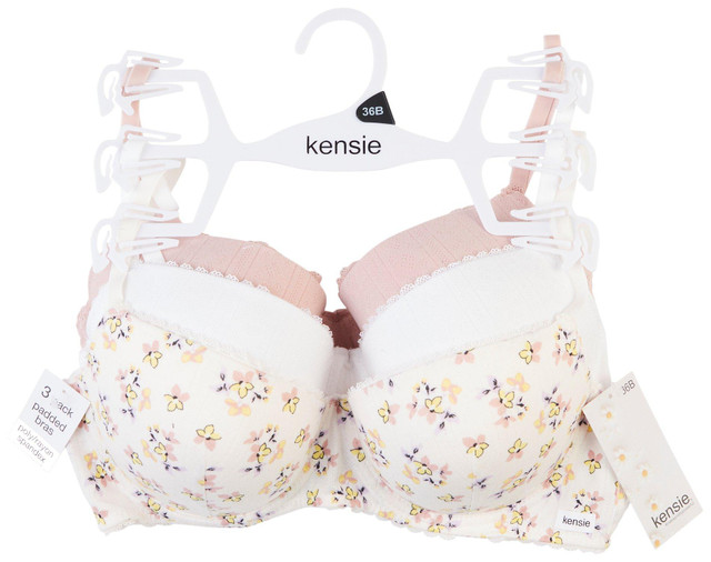 Experience everyday comfort with this Kensie 3-pack of padded bras featuring soft floral and solid designs. Offering light support and a smooth fit, these bras are perfect for daily wear and layering under any outfit.