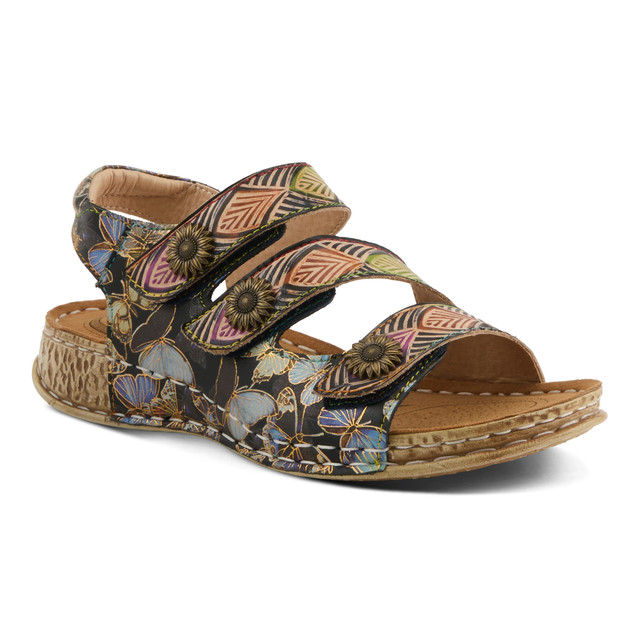 The L'Artiste by Spring Step® Versa sandals are more than just a sandal - they are a luxurious retreat for your feet. Their flexible design and plush padding mold to your unique contours, cradling you in blissful relaxation. These strappy sandals are crafted with a faux leather insole and lining. The leather upper features three hook-and-loop straps for a secure fit. The hand-painted leather straps and metallic butterfly accents elevate your look.