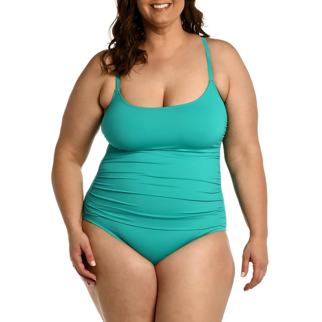 This simple, classic silhouette flatters the figure with allover shirring, while a demi-scoop neckline reveals just the right amount of skin. Guaranteed to be your go-to this season, it holds everything up and in so you can confidently go about your day, whether taking a dip in the pool or bodysurfing in the ocean. Fabrication is 83% Nylon, 17% Elastane.