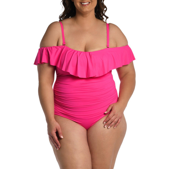 Make a statement with this stunning One Piece Swimsuit, featuring an off-the-shoulder design that exudes elegance and charm. The ruffle accents add a playful touch, while the solid color design brings a sleek look to your beachwear. With moderate coverage and adjustable straps, this swimsuit ensures a comfortable and flattering fit. Perfect for beach days or poolside lounging, embrace stylish swimwear fashion with this eye-catching piece! Fabrication is 87% Nylon, 13% Elastane.
