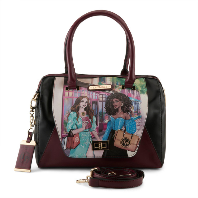 Capture the essence of urban elegance with the In The City Large Satchel Flap Handbag. Crafted from 100% premium PU leather, this stylish handbag features a vibrant design showcasing two ladies enjoying the hustle and bustle of the city. Its chic large satchel shape makes it a versatile accessory for both casual outings and sophisticated events. Embrace your cosmopolitan spirit and elevate your style! Measurements: handbag 12 in. x 6.5 in. x 9 in., drop 7 in., shoulder strap 20-23 in.