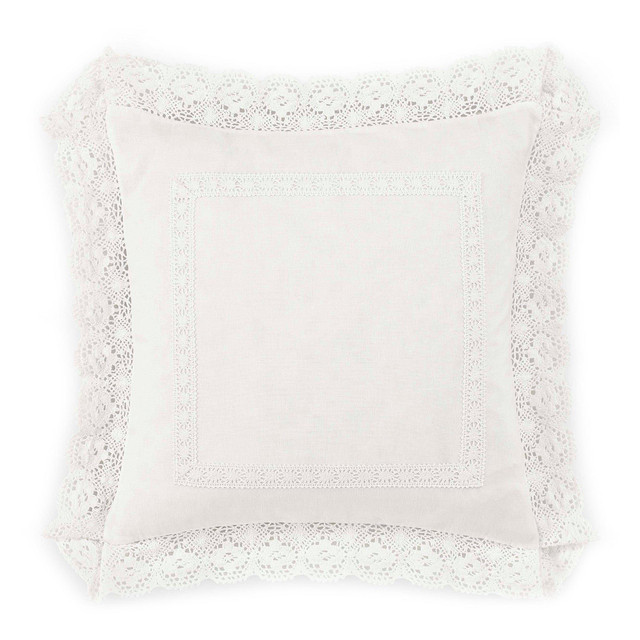 Laura Ashley Annabella 18'' x 18'' Decorative Pillow features a 100% cotton fabrication and a crochet lace detail that adds a romantic pop. Measures 18''L x 18''W.