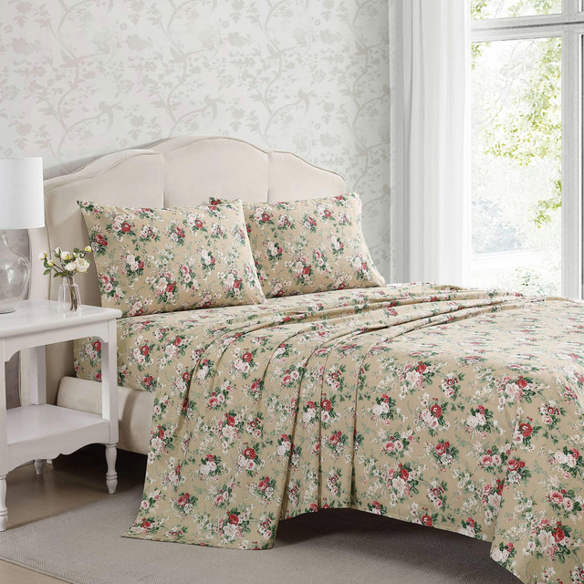 Add a charming romantic touch to your bedroom with this Laura Ashley timeless floral sheet set. The 200-thread count sheets are cool to the touch, breathable and lightweight. Perfect for long-lasting comfort, they become softer with each wash. The fully elasticized fitted sheet prevents slipping from the mattress and ensures the perfect fit. This fits king and queen mattresses up to 18 in. deep (16 in. deep for twin size, 17 in. full size). Machine washable for easy care.
