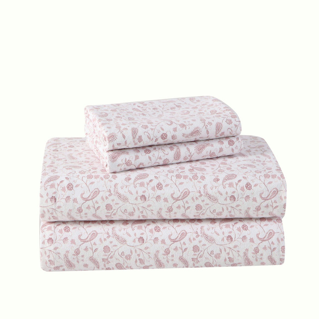 Bring a beautiful new look to your bed with this Laura Ashley Paisley Prance flannel cotton sheet set. The fully elasticized fitted sheet features premium elastic encased around all 4 sides to keep the fitted sheet in place. The fitted sheet set fits mattresses up to 15 deep (12 for twin size). Sheet set includes one flat sheet, one fitted sheet, and two pillowcases (twin one pillowcase). Machine washable for easy care. Machine washable for easy care.