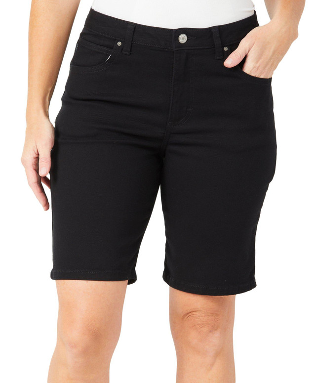Step into casual comfort with the women's Kathy denim Bermuda shorts. Featuring a solid color, button-fly zip closure, classic 5-pocket design, and a 10-inch inseam, these versatile shorts offer a flattering fit and timeless style for everyday wear. Fabrication 98% cotton, 2% spandex