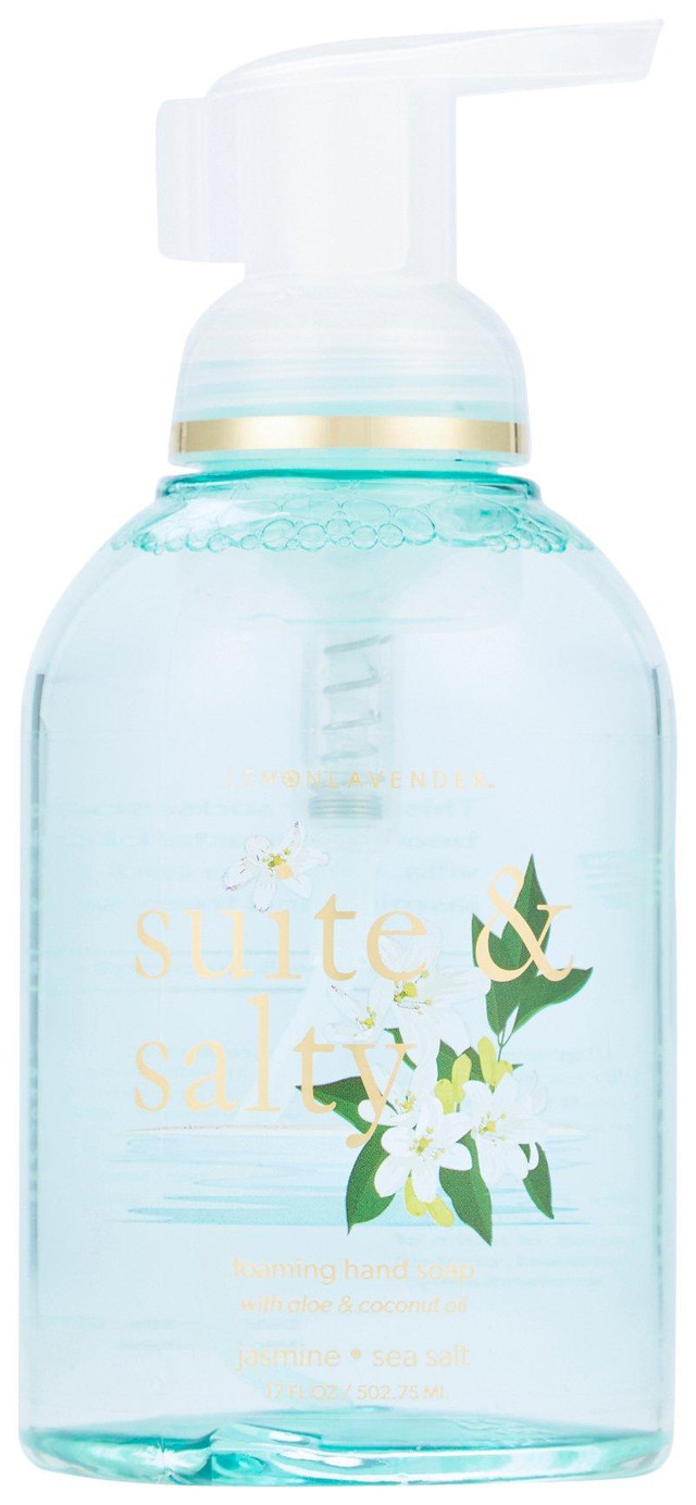 Elevate your hand care routine with Suite & Salty Foaming Hand Soap. This revitalizing soap gently cleanses while delivering lasting moisture, leaving your hands feeling soft, smooth, and refreshed. Crafted with natural ingredients, it features a soothing blend of aloe and coconut oil, lightly infused with jasmine and sea salt for a calming, spa-like scent that pampers your skin with every wash.