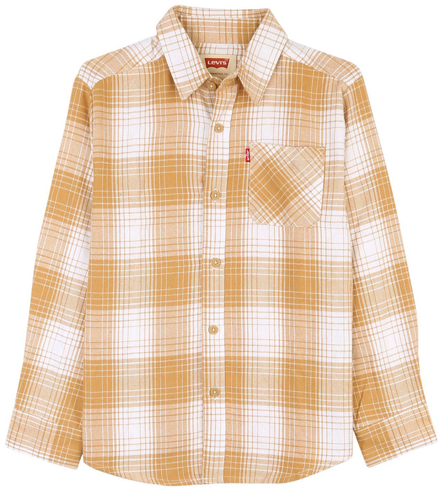 Get ready for the next big adventure in this comfortable long sleeve flannel! It features a buttoned front, plaid design, and buttoned sleeve cuffs. Fabrication is 58% cotton and 42% polyester.