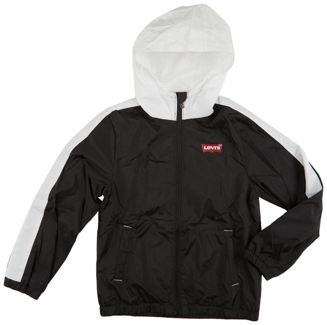 Littles can be an original in signature style no matter the weather with this light weighht windbreaker. It is made of woven poly ripstop fabric with a water resistant finish to help keep little ones dry in light rains. The hood adds extra coziness, the full-zip closure makes layering easy and the rib knit cuffs and elasticized hem help retain warmth