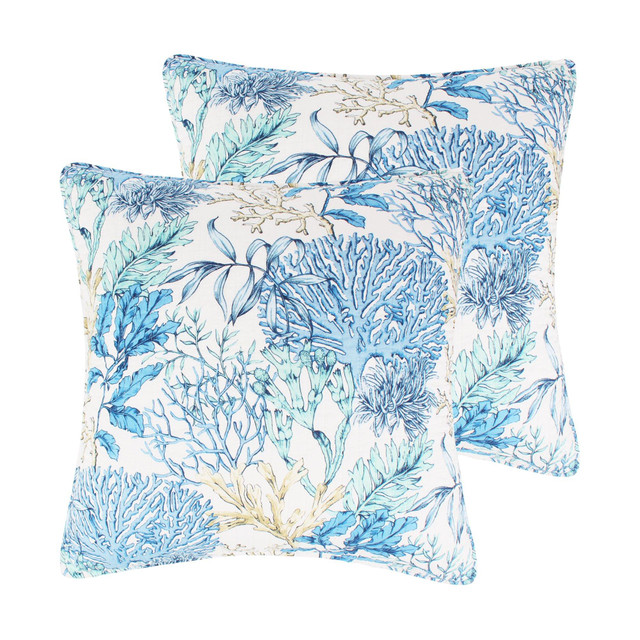 Add a coastal touch to your bedroom with the Mahina Euro Shams. Designed to complement the Levtex Home Mahina collection, this set of 2 features vibrant coral and ocean plant life in ocean blue, taupe, and white. Made from 100% cotton, they are soft, cozy, and easy to care for. Shams come without fillers. Nautical charm meets everyday comfort. Each measures 26 in. x 26 in.