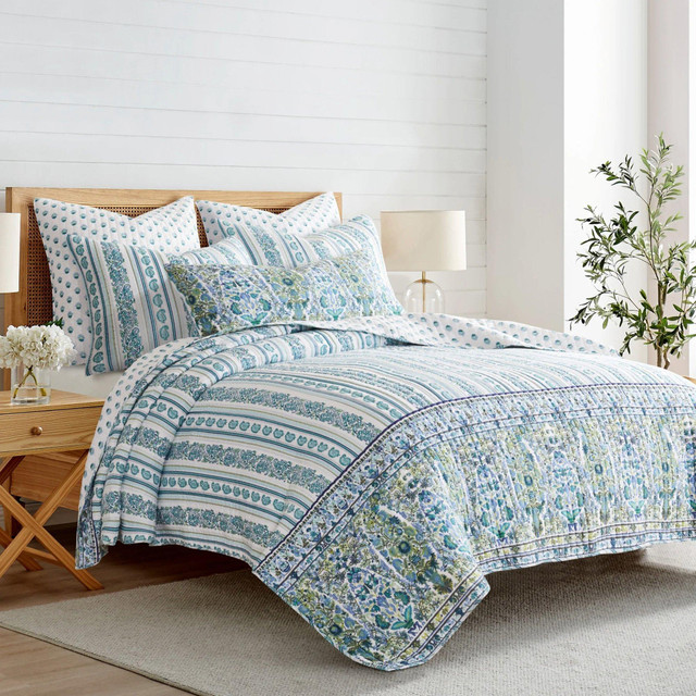 Transform your bedroom into a showpiece with the Yasmina Full/Queen Quilt Setwhere classic elegance meets bold style. Featuring rich medallion and paisley patterns in teal, blue, and green, this reversible cotton quilt delivers luxury and versatility. Includes quilt and two standard shams. Pre-washed for softness, built to last, and machine washable. Elevate your spacebecause average is unacceptable.